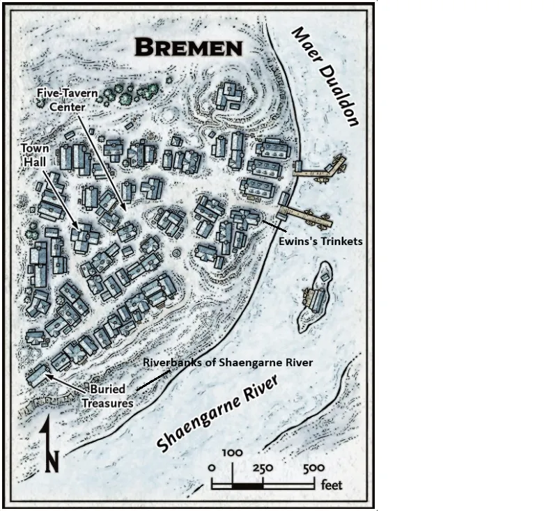 A small fishing town on the western shore of Maer Dualdon. Known for its fishermen and its proximity to the river delta.