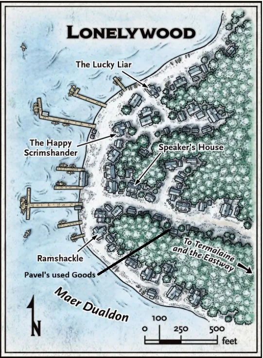 The smallest of the Ten Towns, nestled in a pine forest on the shores of Maer Dualdon. Known for its loggers and hunters. Less politically significant than Bryn Shander but quieter and more defensible.